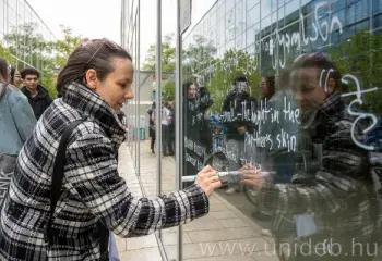 Kedvenc versük néhány sorát írták fel a Debreceni Egyetem magyar és külföldi hallgatói a DEENK Élet- és Természettudományi Könyvtár üvegfalára hétfőn. A Debreceni Egyetem Egyetemi és Nemzeti Könyvtár ezzel a közösségi megmozdulásával kapcsolódott 2026-ban is a költészet napjához.